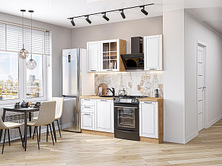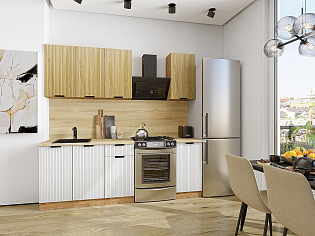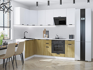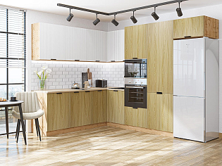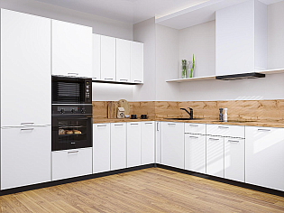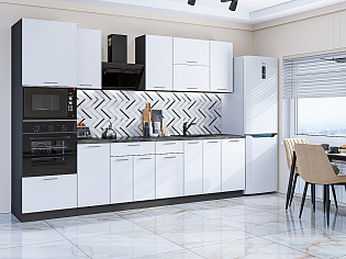 Главный плюс: много шкафчиков.  Выбрали вариант сандал белый. И не прогадали. Смотрится великолепное. Жаль, что двери идут без доводчиков.