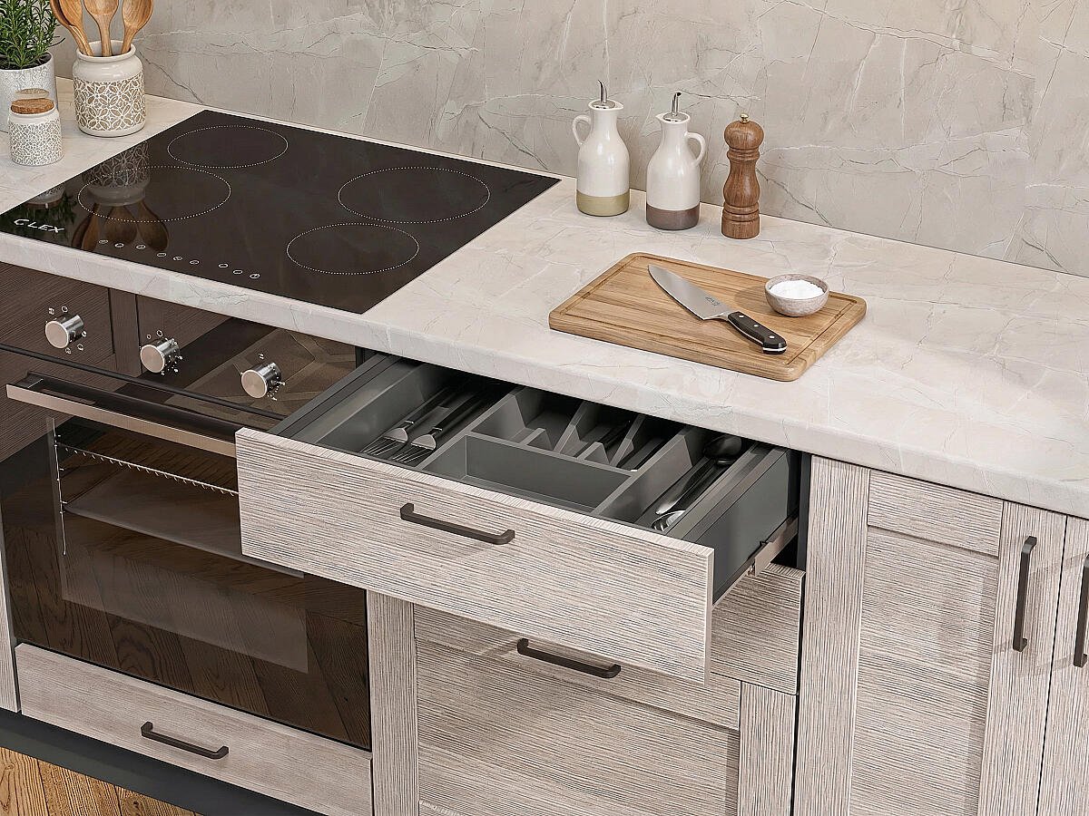 На выбор покупателя влияет конфигурация помещения, целевое назначение, общая площадь. Производитель предусмотрел вариант посекционного приобретения изделий с разными показателями глубины (диапазон 350 — 480 мм).
